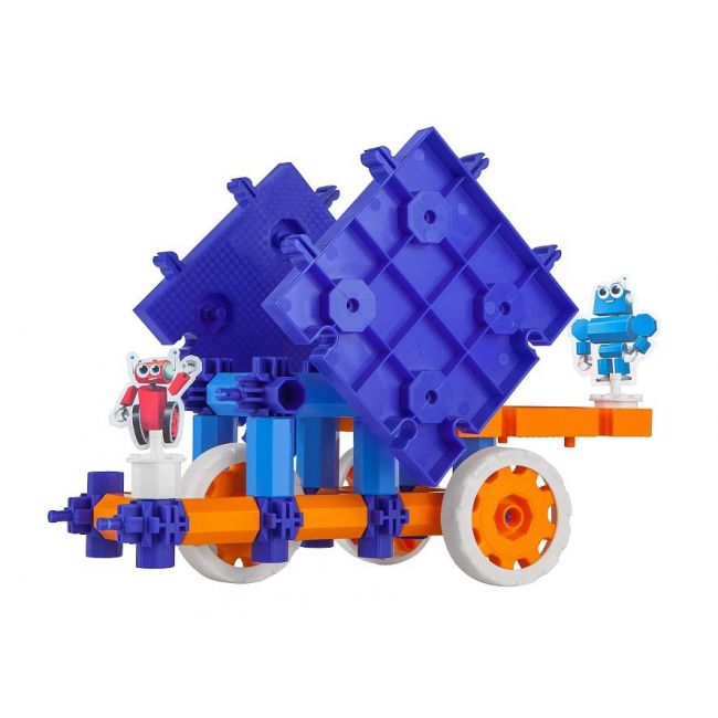 18 klocków o wielu możliwościach podobnie jak w Animals z tym ze kolorystyka tego zestawu bardziej sugeruje tematykę związaną z wodą i nie tylko. Można skonstruować statek i wędkę z kręcącym się kołowrotkiem, dodatkowo działo, kręcącego się bączka czy Quad i wiele innych konstrukcji stworzonych dzięki wspaniałej wyobraźni dziecka. Przełóż, połącz, zmień, dokręć. Dużo inspiracji…