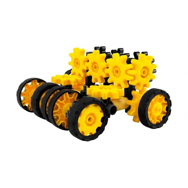 Kosmiczny nieziemski pojazd składający się niekonwencjonalnie z 7 kół z czarnymi oponami. Przy poruszaniu się całości wszystkie 19 kół zębatych kręci się równocześnie. To już jest małe wyzwanie dla małego konstruktora. Przy poruszaniu się pojazdu koła napędowe napędzają wszystkie pozostałe koła zębate powodując fantastyczny efekt odlotowej konstrukcji. Przekładając wg instrukcji 4- 5 elementów można szybko…