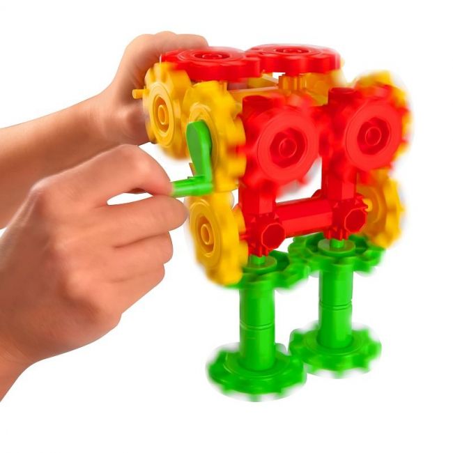 Zaproponowana ilość elementów w zestawie jest tak dobrana, aby zapoznać użytkownika z ideą kół zębatych – jak poruszają nawet odległe elementy.