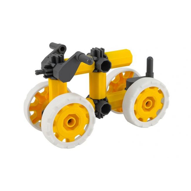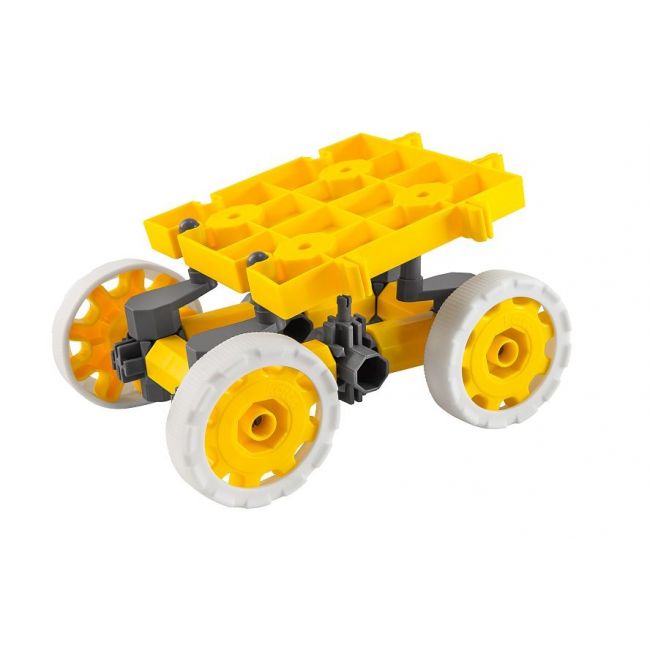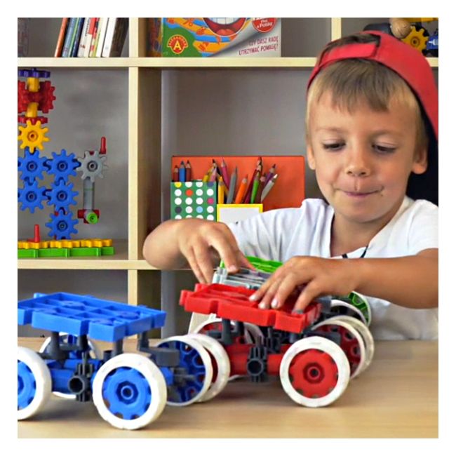 Zbuduj sam swoją zabawkę. Zainspiruj swojego malucha. Nie wszystko musi być zawsze gotowe do zabawy – samochodzik, garaż, wózek do zabawy itd. Pozwól i daj dziecku możliwość kreatywnego działania niech podczas zabawy pozyska więcej umiejętności twórczych czy konstrukcyjnych niech rozwija swoją wyobraźnię. Daj dziecku zbudować sam swój pojazd, który dzięki białym oponom będzie śmigał po wykładzinie jak wyścigówka a jak trzeba przewiezie małe samochodziki na „ pace” na specjalnej górnej platformie. Hummery można zakupić w 4 różnych kolorach. Proste elementy, przejrzysta instrukcja z dodatkowymi pomysłami na inne pojazdy, konkretny cel. Jak to mówi Jaś – Czas się bawić! Zestaw kompatybilny z innymi zestawami KORBO.