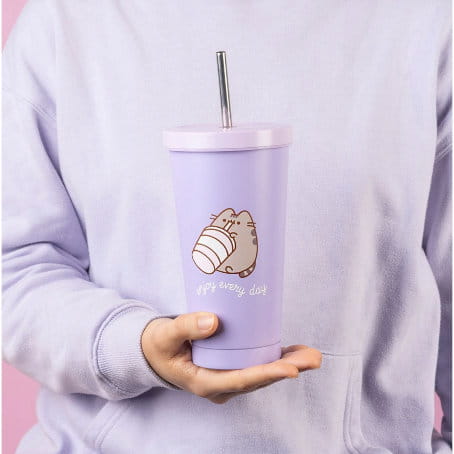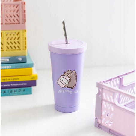 Pusheen Kubek metalowy w pudełku z metalową rurką [Violet] [VM03]