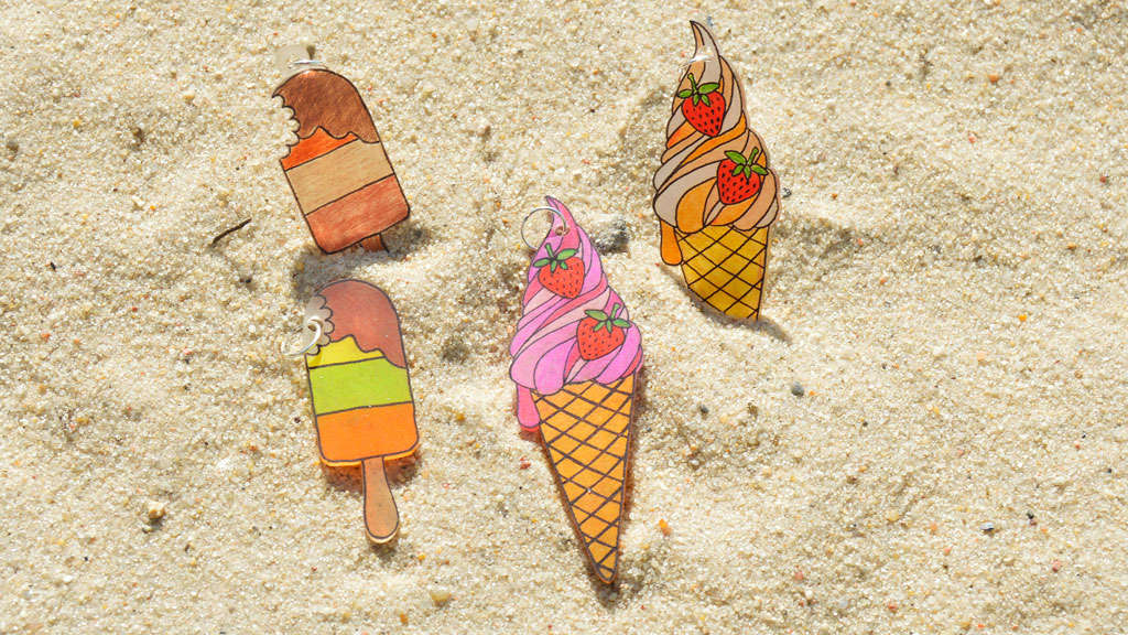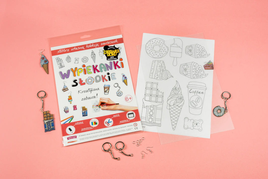 Odrysuj na specjalnej folii szablony dołączone do zestawów, pokoloruj, wytnij je, a na koniec wypiecz przez kilka minut w domowym piekarniku w temp. 160 o C.
